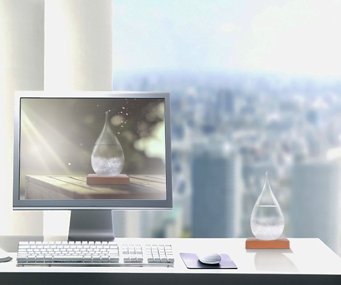 Foloseste Barometrul Meteo de Birou drept accesoriu decorativ pentru birou sau pentru acasa. Designul special sub forma unei picaturi de sticla, asezata pe un platou de lemn, faciliteaza plasarea acesteia in orice loc te-ai gandi. Este recomandata pozitionarea acestui Baromentru Meteo de Birou langa fereastra timp de doua saptamani pentru o acuratete cat mai mare a predictiilor vremii.