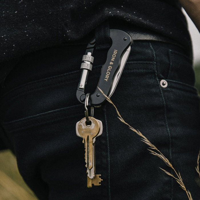 Utilizare: Carabiniera Always ready se agata de rucsac sau de pantaloni si nu se desprinde pentru ca are un sistem de prindere super Hot. Inelul este suficient de mare incat sa-ti asezi in el si cheile. Vine intr-o cutie metalica, neagra cu detalii aurii. Cu adevarat DE LUX. Este unul din cele mai ingenioase cadouri pentru barbati cool.