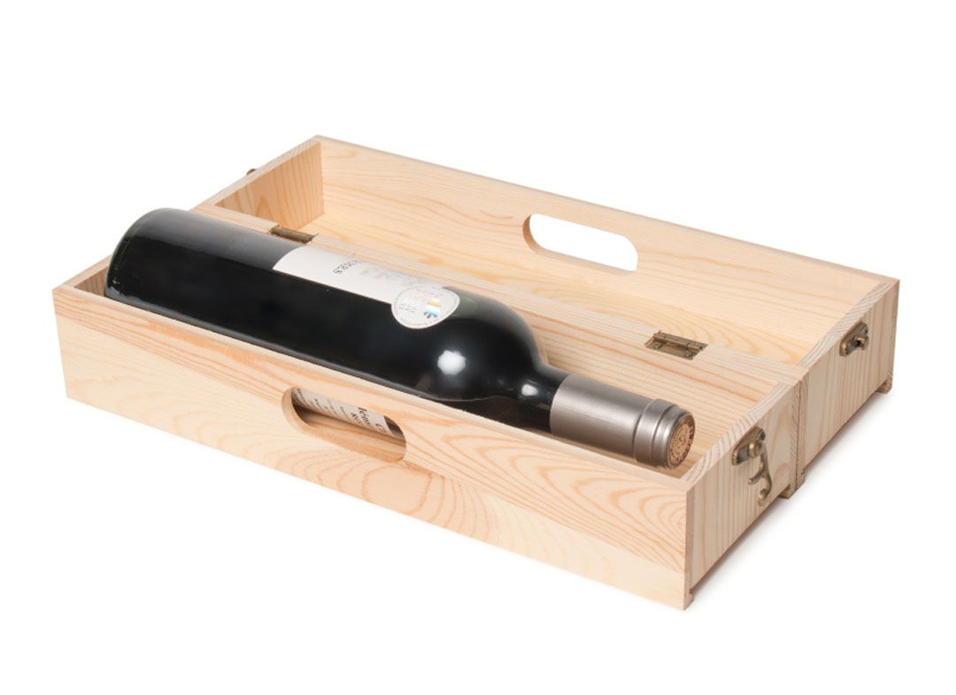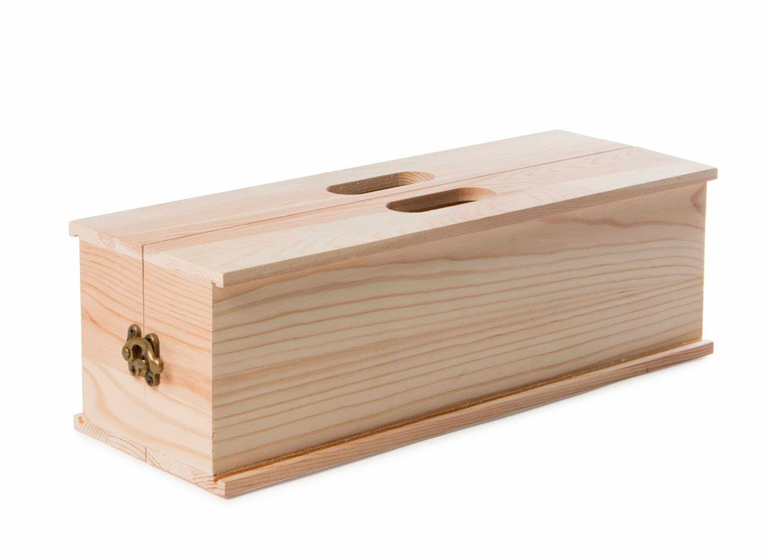 Caseta cu mesaje pentru vin, din lemn de culoare deschisa.