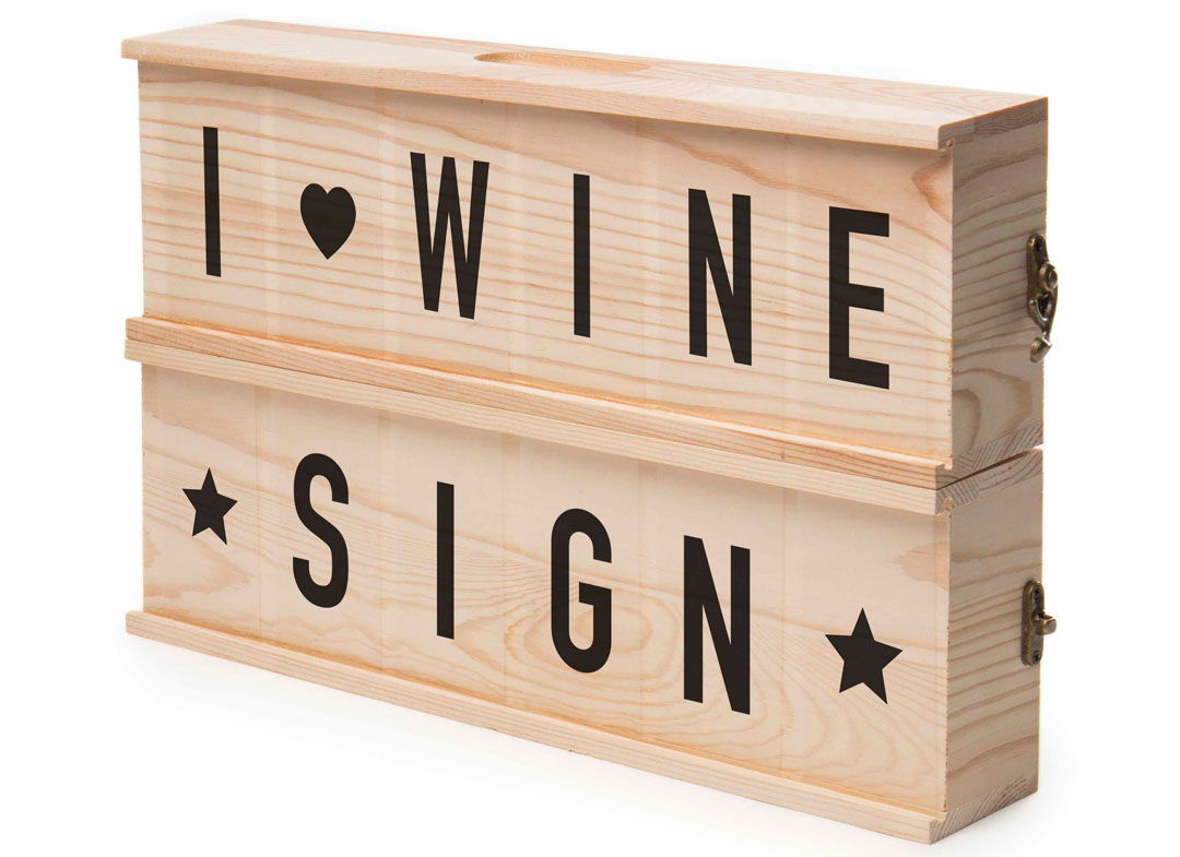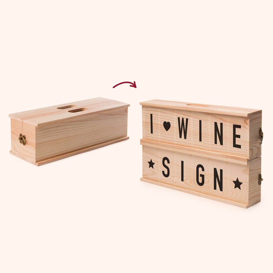 O sticla de vin spune multe despre cel care o ofera in dar, o detine sau o consuma, devenind o expresie a rafinamentului si bunului gust. O caseta pentru vin este acel articol din colectia unui iubitor de vin care confera oricarei sticle de vin statutul de obiect decorativ unic, demn de a fi expus in living. Caseta cu mesaje pentru vin poarta cu sine un mesaj plin de insemnatate, cat mai amuzant sau inspirat, pentru ca vinul sa isi gaseasca un loc privilegiat in designul interior. Astfel, iti poti stii vinul mereu in siguranta, intr-un mod cat mai estetic si rafinat si poti profita de setul de litere, cifre si simboluri pentru a personaliza constant mesajul care sa iasa in evidenta in casa ta, printre celelalte piese de mobilier. Poti folosi Caseta cu mesaje pentru vin pentru a-ti exprima liber sentimentele si gandurile si pentru a le transmite celorlalti, fie ca vrei sa iti declari dragostea cuiva sau doar sa iti demonstrezi inca o data iubirea pentru vin. Aceasta caseta din lemn de culoare deschisa se va potrivi perfect in orice birou, sufragerie sau dormitor si poate pastra bine sticla care asteapta sa fie desfacuta la ocazii importante.