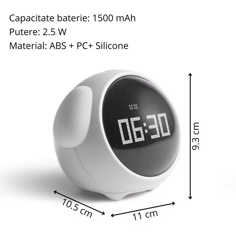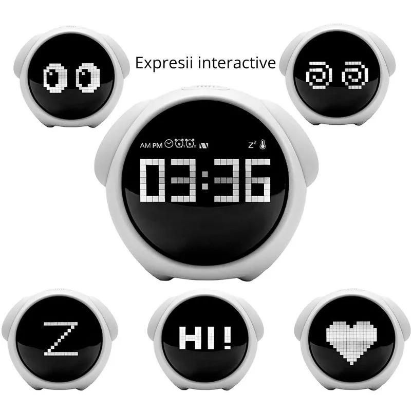 Sistemul inteligent al acestui Ceas desteptator Emoji Mania este insotit cu o serie de expresii faciale si emoji-uri simpatice care aduc zambetul pe chipul micutului. Astfel, daca puiul tau are probleme cu somnul si nici povestile cu zmei si zane nu par sa-l convinga sa calatoreasca rapid in lumea viselor, cu siguranta acest ceas o va face.
