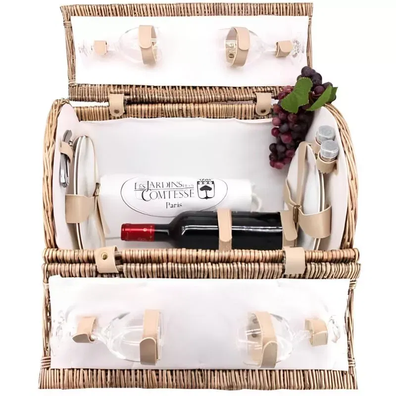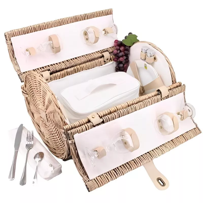 Utilizare: Cos picnic 4 persoane Opera este prevazut cu o inchizatoare la partea superioara care se roteste vertical pentru deschidere. Patrunzand in interiorul cosului de rachita, vei gasi toate acesoriile dorite, cat si suficient spatiu de depozitare ca sa te echipezi cu tot ce ai nevoie pentru o iesire cu cei dragi.