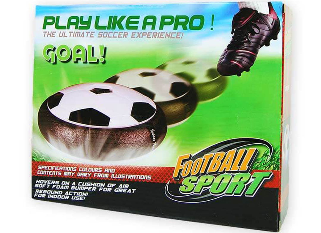 Discul pentru fotbal de interior are un buton de aprindere si functioneaza cu puterea aerului, plutind pe orice suprafata. Da drumul la distractie si joaca-te alaturi de prieteni!