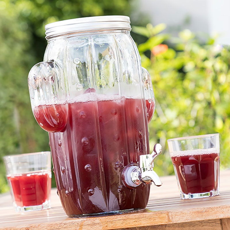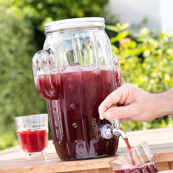 Adauga apa plata sau apa minerala, limonada, suc sau cocktailuri exotice si aseaza cactusul la vedere pentru a stinge arsita celor prezenti la petrecere. Pentru ca are o deschidere ampla in partea superioara va fi usor sa-l umpli iar si iar. Totusi capacitatea sa generoasa, de 4 litri, il recomanda ca o buna gazda pentru multi musafiri. Pentru a-si umple paharele, acestia vor misca robinetul si vor elibera bautura racoritoare. Foarte comod, de vis.