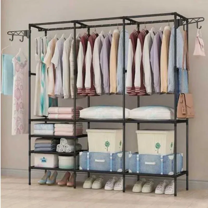 Garderoba ta merita mai mult decat un colt de scaun si o bara improvizata! Cu acest dulap pliabil cu structura metalica si rafturi multiple, hainele stau drepte, fericite si gata de purtat, exact ca-n reviste!