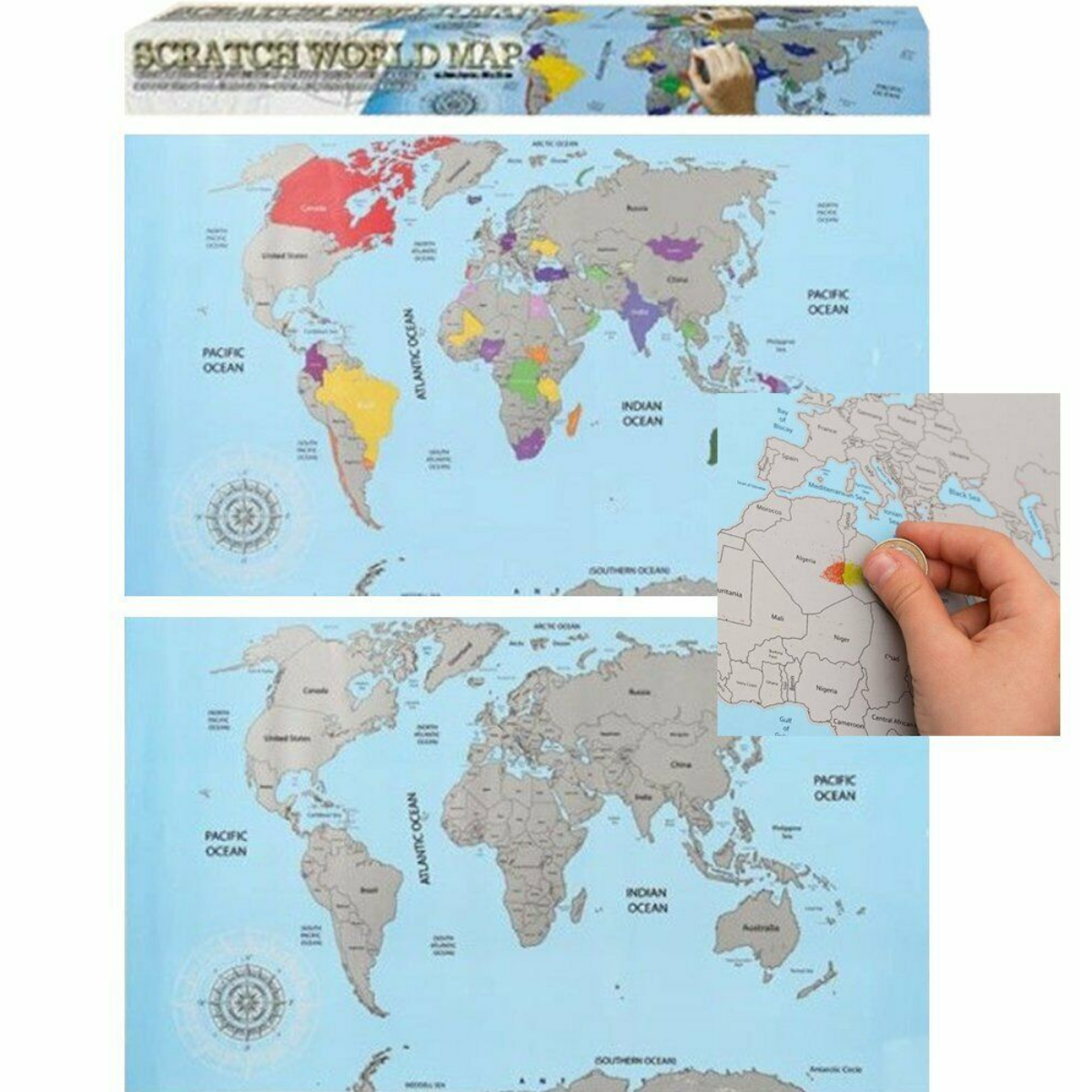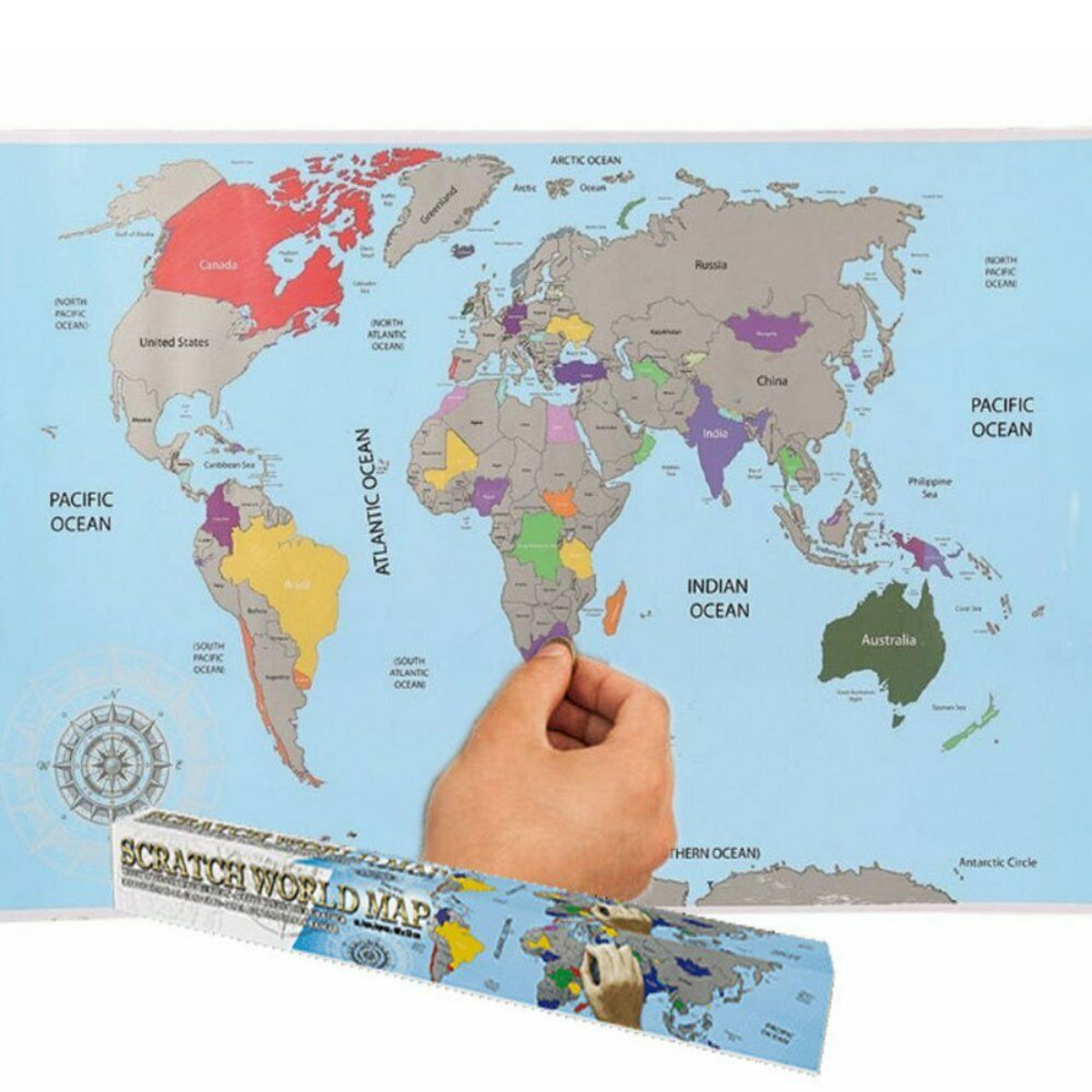 Descopera Pamantul cu fiecare zgarietura, simplu, economic si rapid! Harta razuibila a Lumii, 88 x 52 cm, iti pune lumea la picioare ducandu-te intr-o calatorie moca, peste zeci de mari si tari. Foloseste moneda ta norocoasa pentru a scarpina rand pe rand continentele lumii si apoi fa-ti planuri incotro vei ateriza in urmatoarea vacanta. Nu uita sa-ti transformi incaperile pline de productivitate si pe cele relaxante intr-o adevarata inspiratie, atarnand aceasta harta pe pereti sub forma unui obiect decorativ.