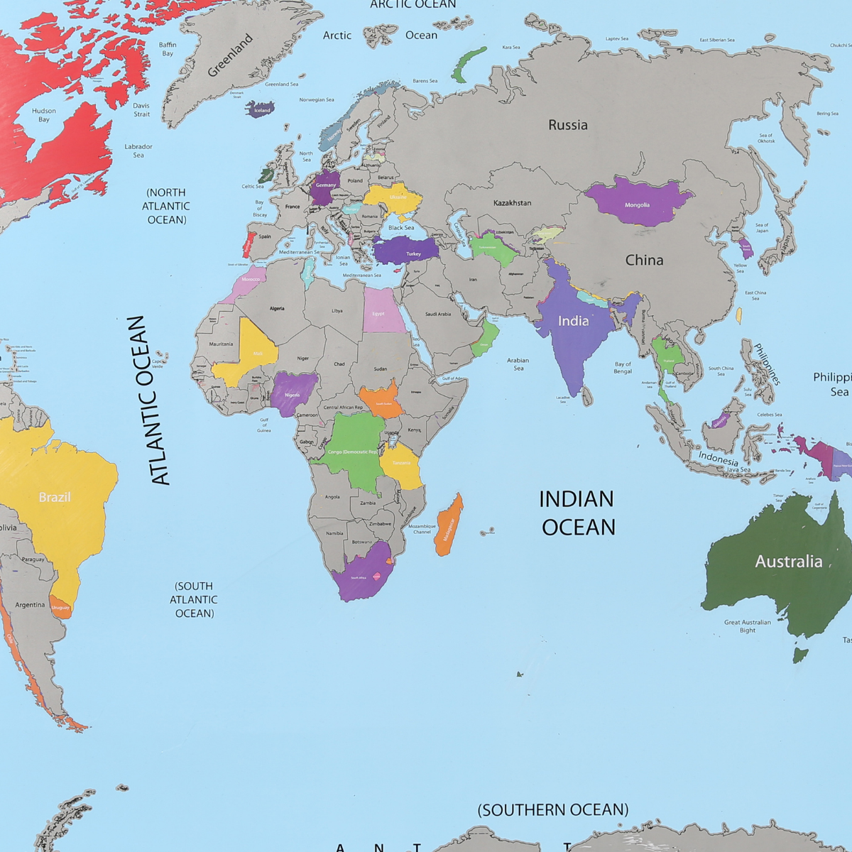 Pentru toti corijentii la geografie si nu numai, iti propunem azi sa scarpini Harta razuibila a Lumii, 88 x 52 cm, care te va feri de experiente neplacute si te va transforma intr-un adevarat cuceritor al lumii. Aceasta harta e perfecta nu doar pentru a-ti inlesni cunostintele teritoriale si sa-ti dezvolte abilitatile aflate in colaps, ci si pentru a decora bucataria, camera copilului, biroul sau orice alt colt de suflet.