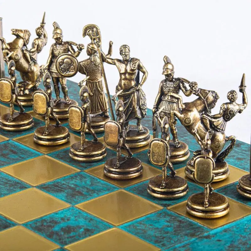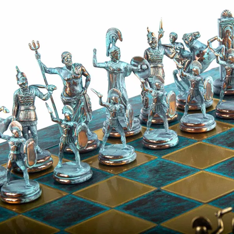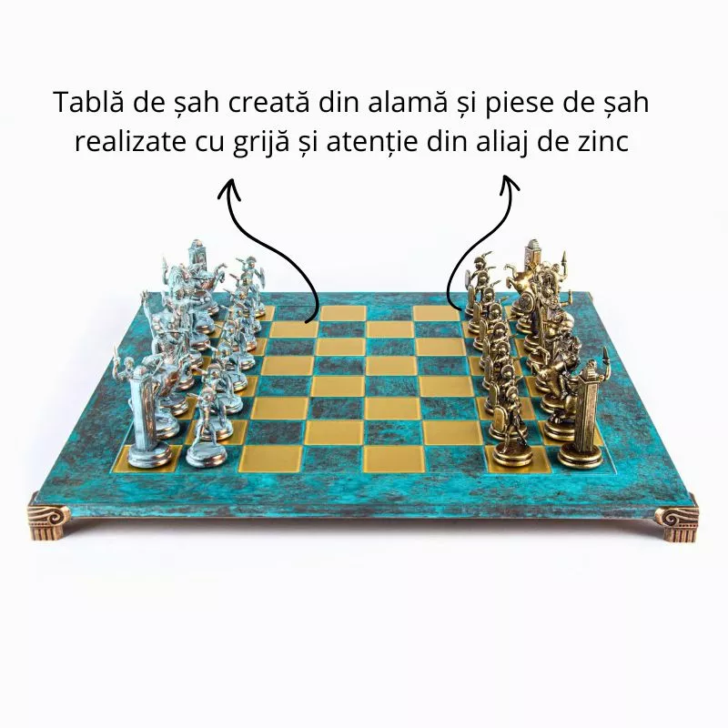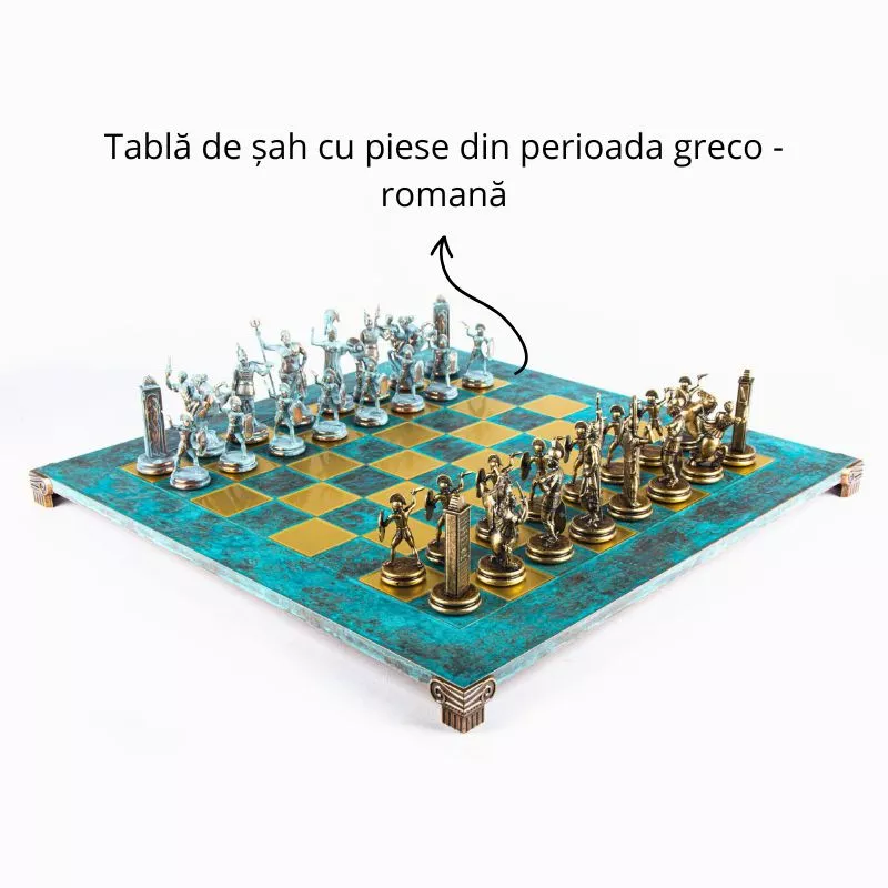 Persoanele care apreciaza accentele si detalii unice: Tabla de sah bronz turcoaz si piesele de culoare albastra si maro adauga un farmec aparte acestui joc. Pentru persoanele care cauta elemente si detalii unice in obiectele lor de colectie sau de decor, acest joc va fi cu siguranta pe placul lor.