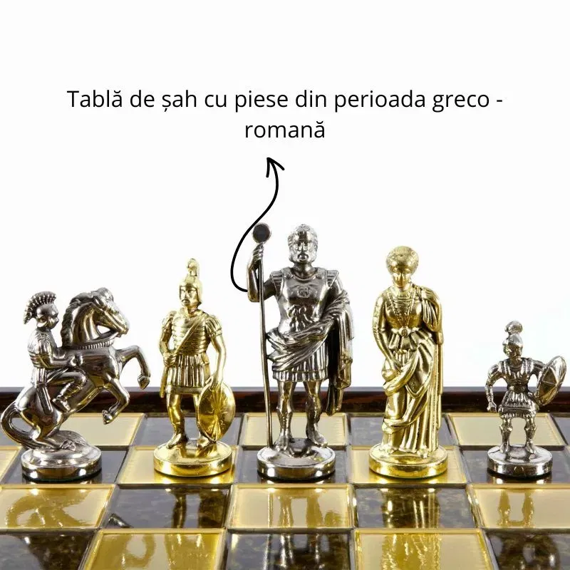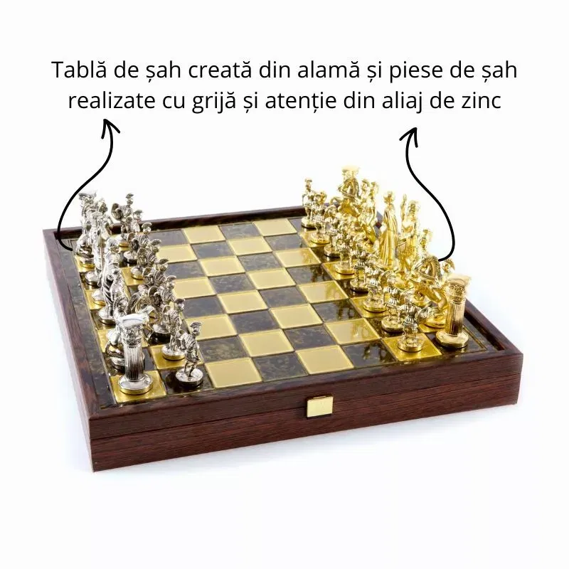 Tematica interesanta: Acest joc de sah se remarca prin designul sau unic si tematica "Tronuri Antice". Piesele aurii si argintii, impreuna cu tabla de sah Bronze Brown, aduc o nota de mister si fascinatie in timpul jocului, creand o experienta captivanta si deosebita.