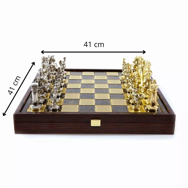 Intra in lumea sahului cu acest set uimitor din perioada greco – romana. Creat cu o atentie la detalii incredibila, aceasta tabla de sah va va transporta intr-o lume plina de strategii istete si lupte severe. Caseta de lemn stratificat permite o depozitare sigura a pieselor si va facilita o deplasare usoara.