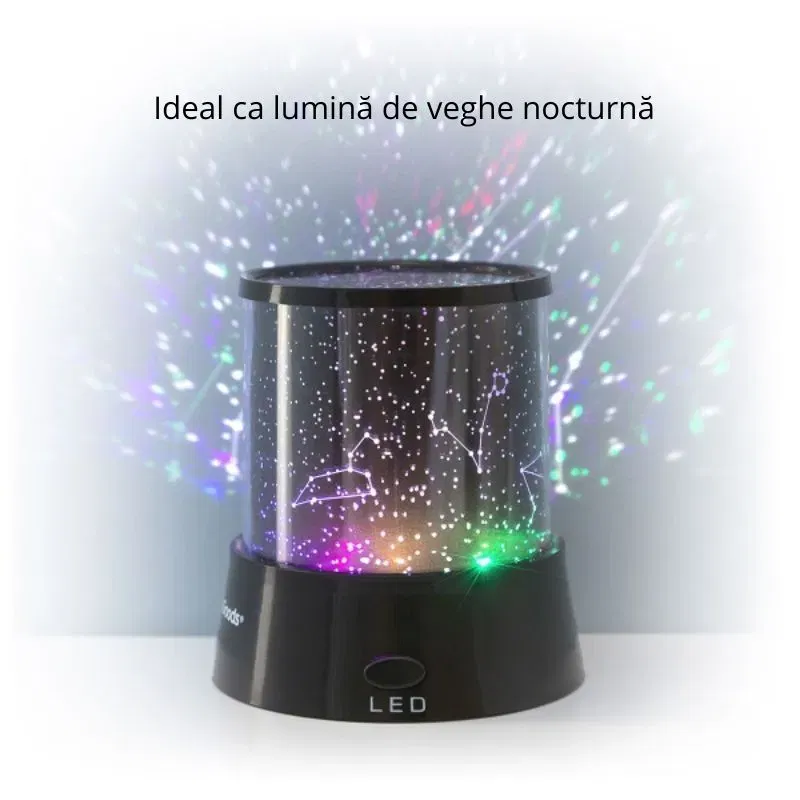 Se foloseste cu adaptor de alimentare (care nu este inclus in pachet) ori cu 3 baterii AA (care nu sunt incluse). Este o lampa de dimensiuni mici careia ii vei gasi cu usurinta locul pe noptiera copilului. De asemenea, este sigura in utilizare, iar copiii un pic mai marisori vor reusi sa-si aprinda singuri lampa si sa se joace cu diferitele moduri de iluminzare. In afara de lampa de veghe pentru camera copiilor, Lampa proiector led Cer galactic isi va gasi rolul potrivit in cazul petrecerilor, zilelor de nastere, ca lumina decorativa deosebita.