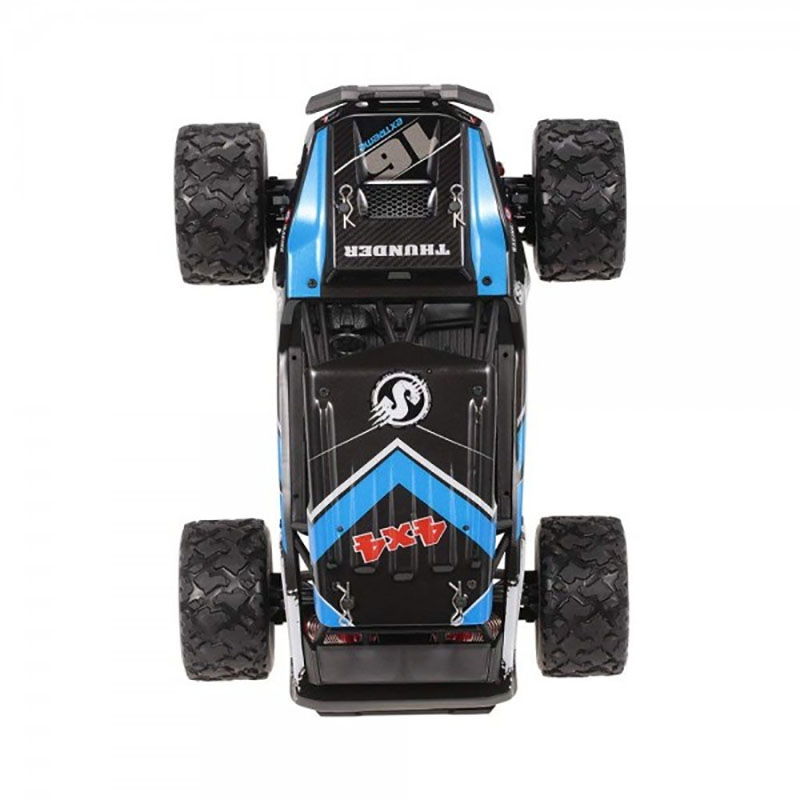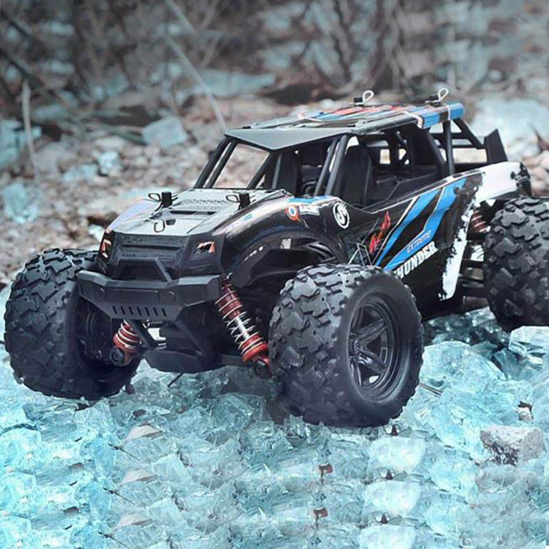 Design Specific Shockproof Masina cu Telecomanda Linxtech Thunder 4X4, 36Km/h, Albastru - Cele patru roti au suspensii independente astfel directie este mai putin afectata la viteza pe drum accidentat. Caroseria acestei masinute este din material de calitate rezistent la socuri si flexibil pentru a proteja cat mai bine piesele din interior.Utilizare: Rotile acestei masinute electrice sunt realizate din cauciuc ranforsat si elastic, facand masina potrivita pentru orice tip de suprafețe de sol. Cu modelele de rulare in trepte, anvelopele ajuta masina sa mearga bine pe suprafete umede si neuniforme, de exemplu, sol, ierburi, betoane, drum pietruit si multe altele. Ofera cadou Masina cu Telecomanda Linxtech Thunder 4X4, 36Km/h, Albastru.