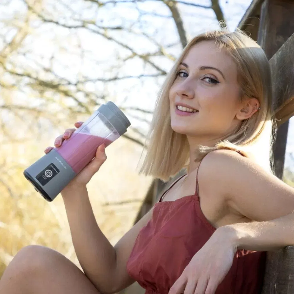 Simte cum fuzioneaza gustul fericirii cu doza zilnica de vitamine dupa care tanjeste corpul tau. Mini Smoothie Maker Portabil, Recharge-a-Blend, te ajuta sa te bucuri zilnic de o doza ampla de vitalitate atunci cand te antrenezi pe terenul de sport, la sala sau cand pleci peste munti si tari ca sa-ti incarci bateriile cu noi experiente.