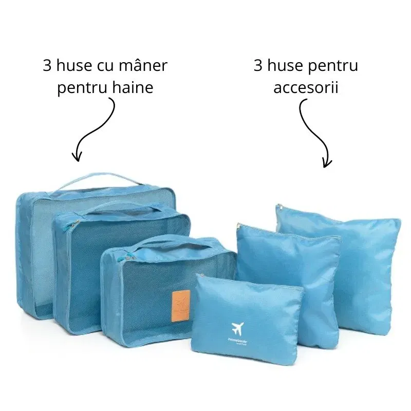 Foloseste acest Organizator bagaje, 6 huse separatoare pentru a face ordine in orice bagaj de calatorie, pentru a-ti gestiona mai eficient spatiul disponibil si pentru a contribui la sanatatea articolelor personale. Adauga articolele tale favorite in fiecare gentuta, selectând-le dupa culoare, destinatie de uz sau sex si prin intermediul fermoarului alege sa le pastrezi la loc sigur.