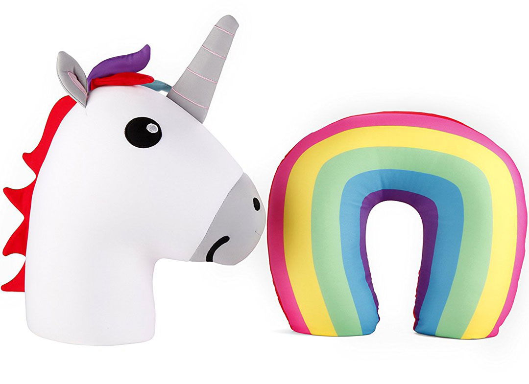 • Perna detasabila cu unicorn este foarte usoara si moale • Se transforma rapid dintr-un unicorn intr-o perna curcubeu pentru gat, Unicornul fiind detasabil