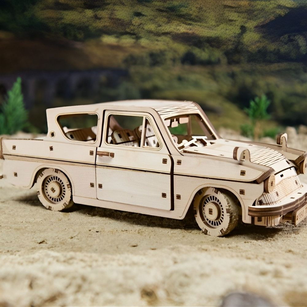 Puzzle-ul 3D Flying Ford Anglia din lemn, Ugears are 246 de piese, este evaluat ca nivel de dificultate „mediu” si are un timp estimat de asamblare de 6 ore. Pentru a asambla, pur si simplu scoateti piesele de pe placile pretaiate cu laser si fixati-le impreuna urmand instructiunile ilustrate. Instructiunile sunt disponibile in 11 limbi. Nu este necesar lipici sau unelte speciale – tot ce aveti nevoie pentru asamblare este inclus in cutie. Asigurati-va ca utilizati smirghel si ceara incluse, pentru a netezi piesele in miscare, pentru o functionare optima.