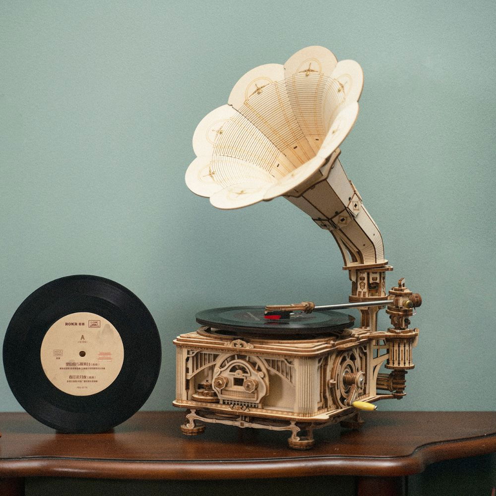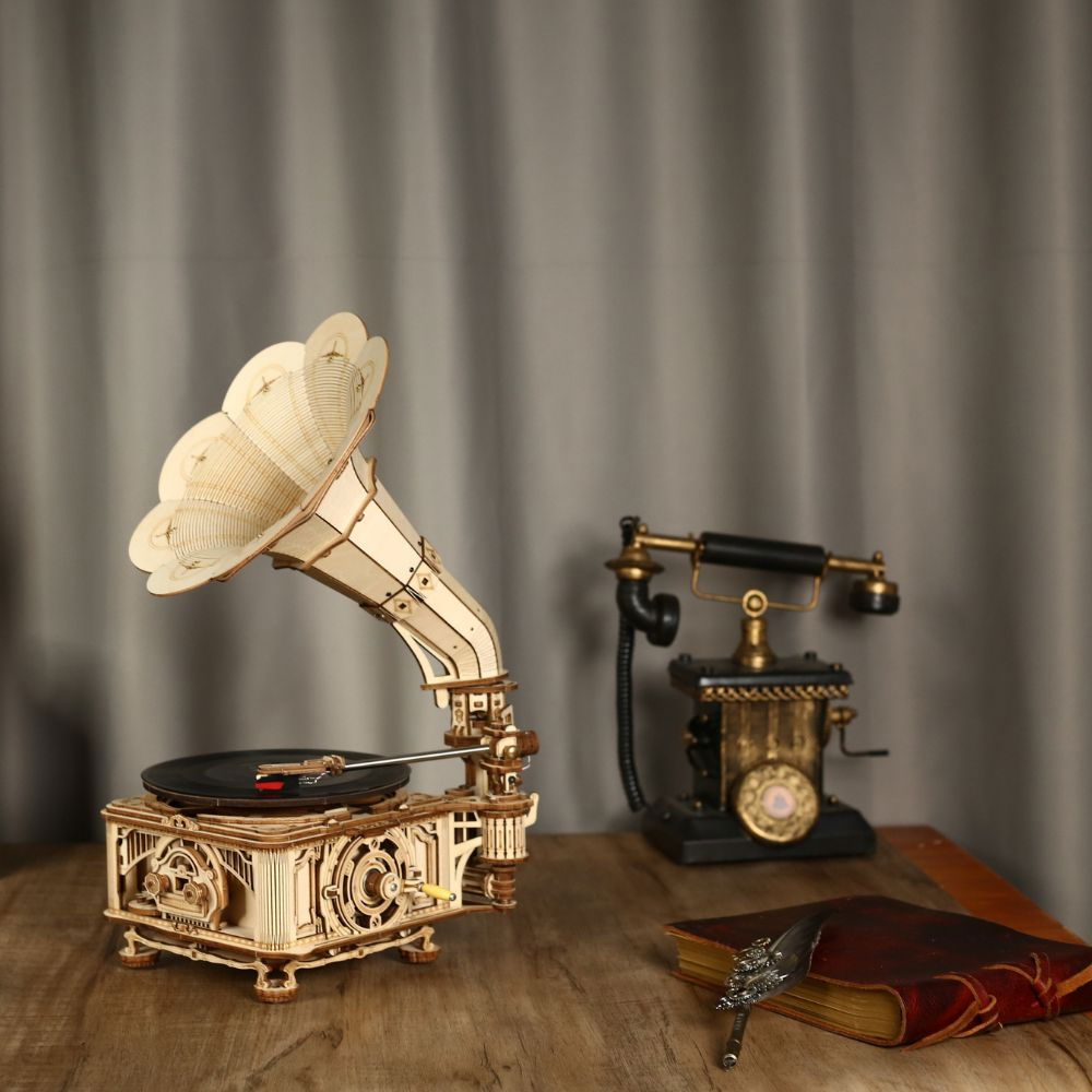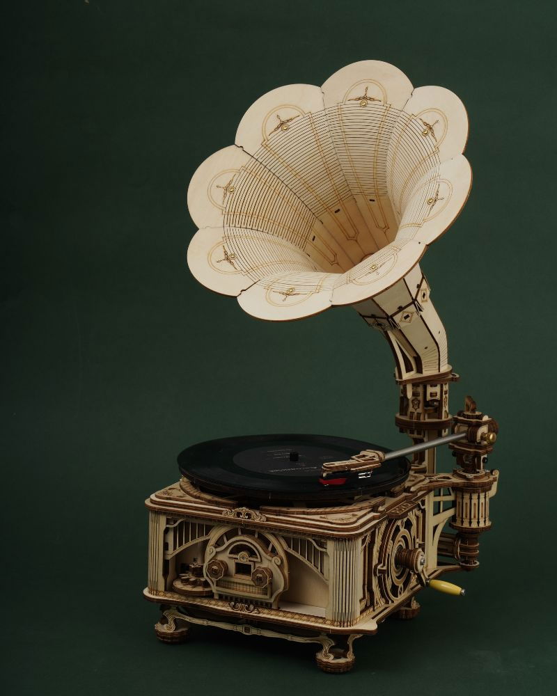 Puzzle 3D Gramofon Clasic Bifunctional, manual si automat este un obiect ce te va transpune intr-o alta epoca!