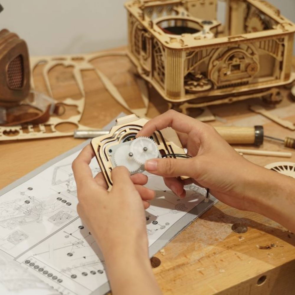 Puzzle 3D Gramofon Clasic Bifunctional manual si automat Lemn Robotime