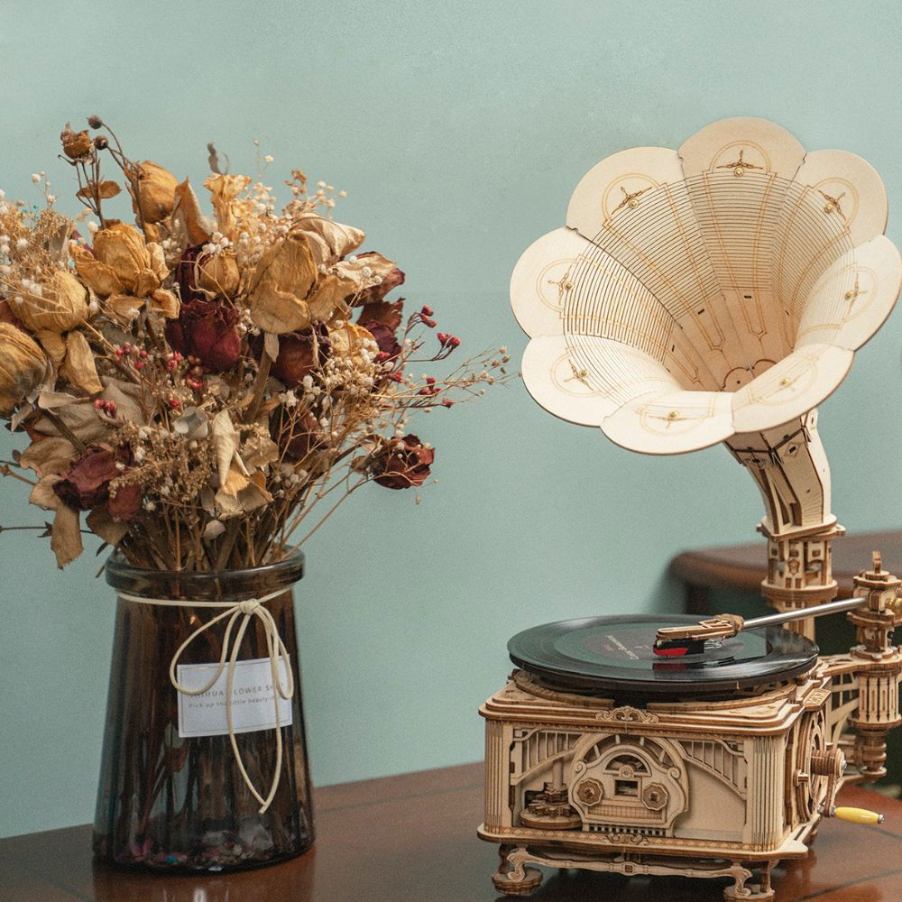 Acest model de gramofon clasic si melodiile lui te vor duce inapoi spre secolul al XIX-lea.