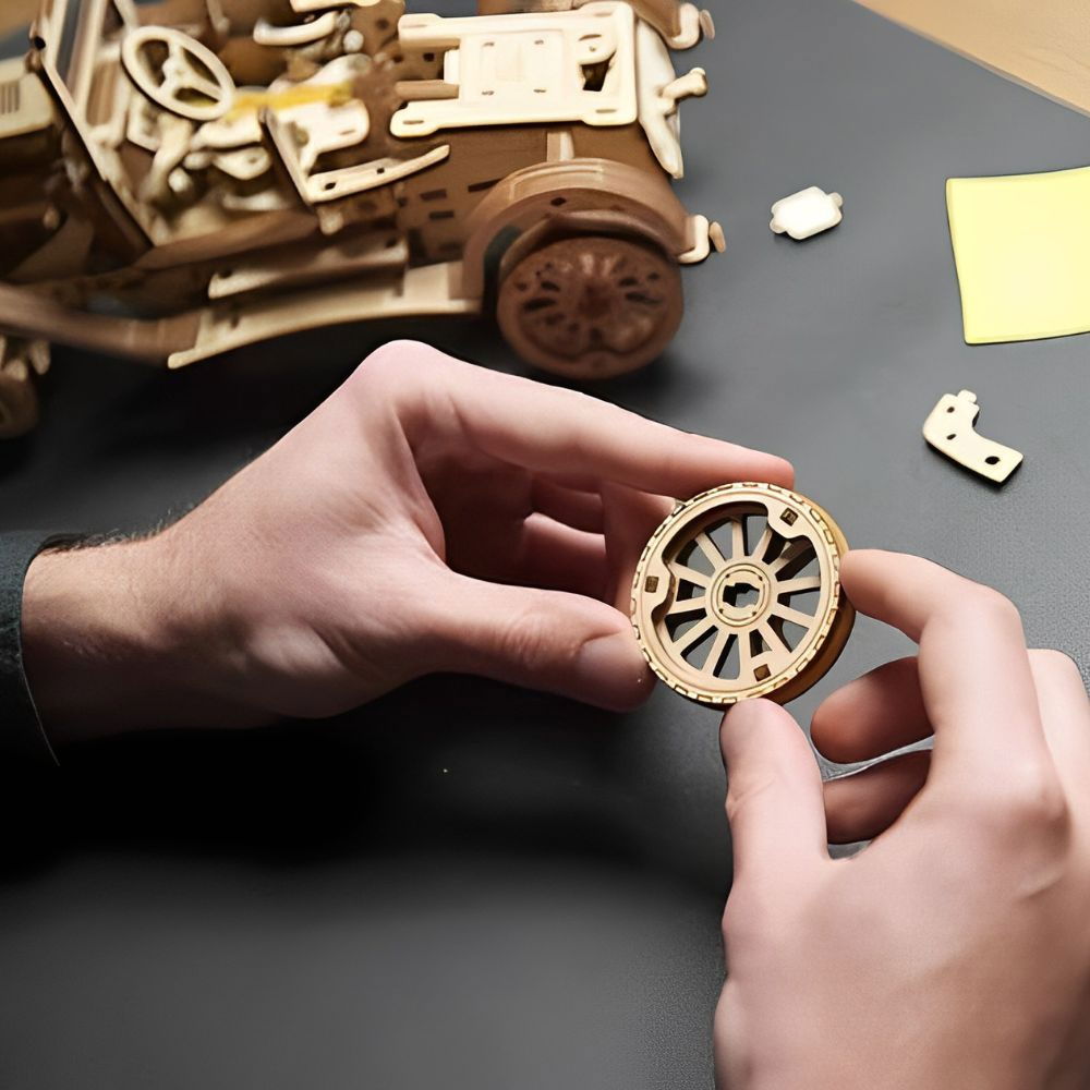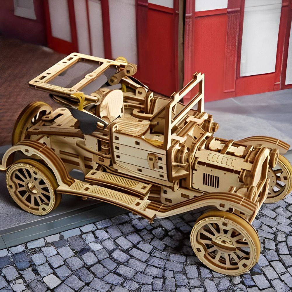 Puzzle-ul 3D Retro Car UGR-T din lemn, Ugears este un un model de masina special si clasic, care va duce cu gandul inapoi in vremurile trecute. Acest model vintage aduce un omagiu erei automobilelor.