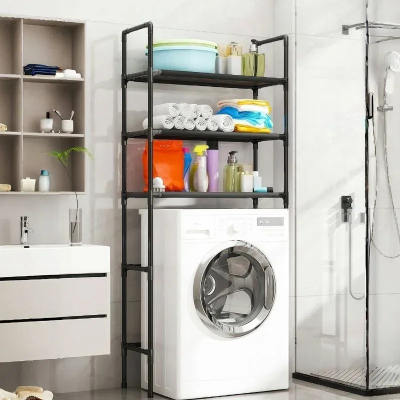 Raftul de depozitare pentru baie cu 3 niveluri este solutia ideala pentru a maximiza spatiul din jurul masinii de spalat si a crea o zona functionala si bine organizata. Construit special pentru a fi montat deasupra electrocasnicelor, acest suport vertical iti permite sa depozitezi detergent, balsam, cosuri, prosoape sau alte produse esentiale pentru baie si spalatorie.