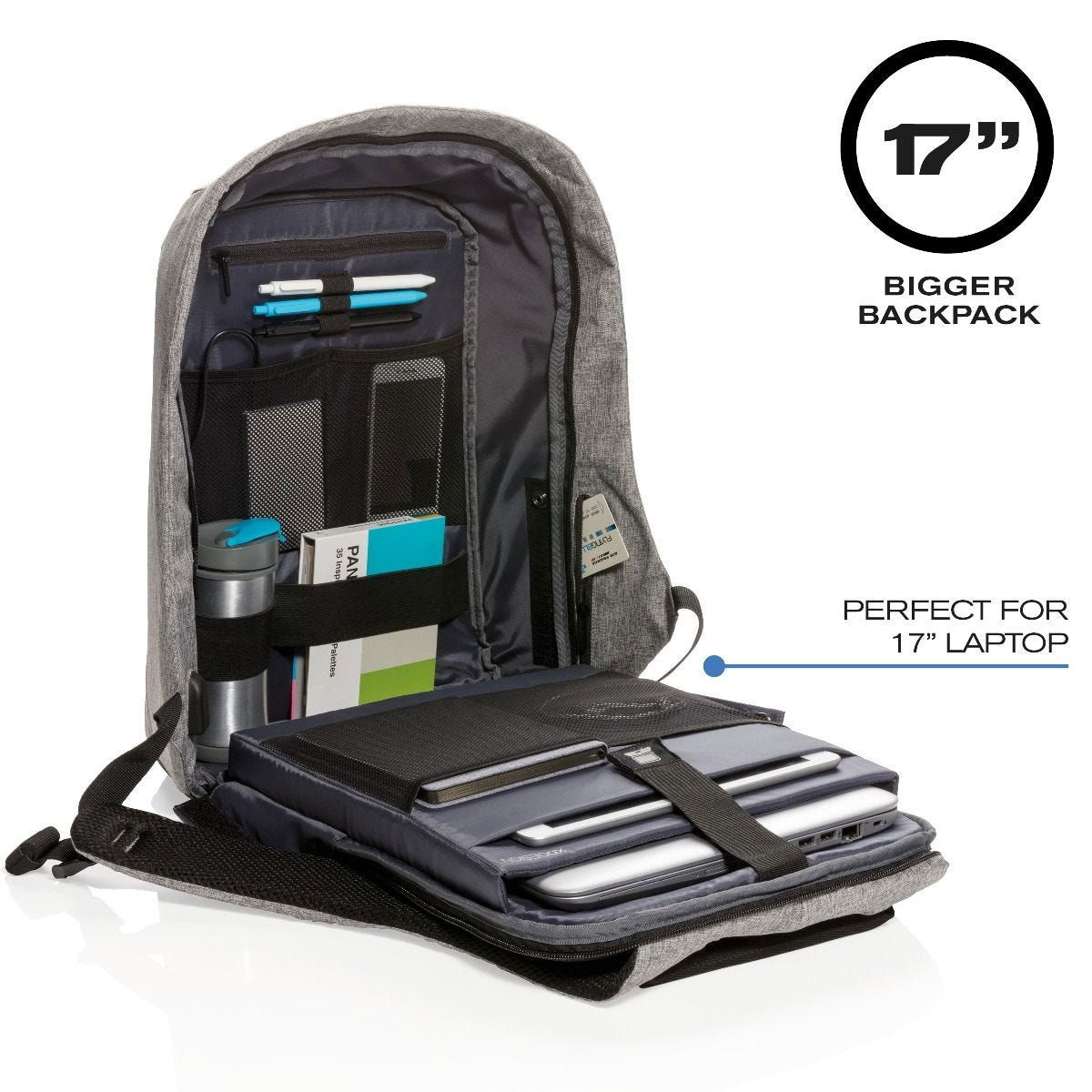 Daca inca nu ti-ai gasit cucerirea perfecta, fara nicio indoiala te vei alege cu un partener pe cinste atunci cand alegi acest rucsac antifurt Bobby XL. Iar daca-ti plac persoanele durdulii, cu siguranta rucsacul le va face o competitie pe cinste, asa ca va fi destul de greu sa poata fi combatut de cineva sau de alt accesoriu similar. Rucsacul antifurt Bobby XL vine cu un potential pe masura unei garderobe sau a unui esential cat se poate de ridicat. Dimensiunea de 17 inch este ideala chiar si pentru cei cu tehnologie ultra generoasa, care-si transforma purtarea gadgeturilor preferate intr-o adevarata obisnuita.