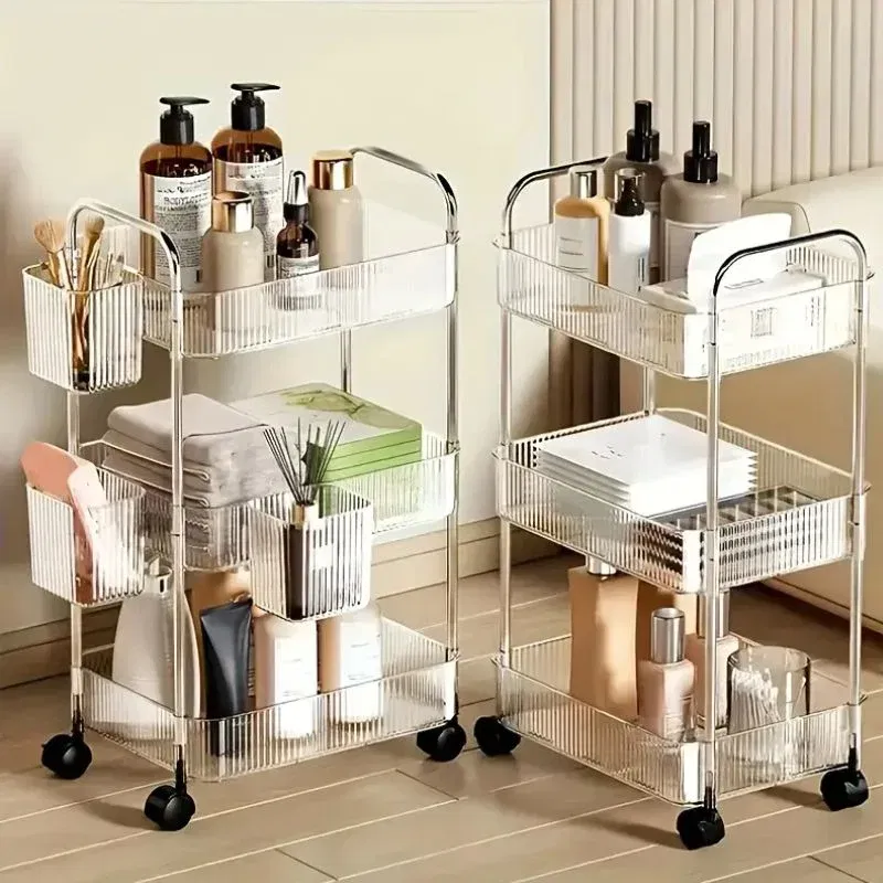 Se foloseste ca suport de depozitare mobil in orice incapere – de la baie la bucatarie. Transparent, usor si mereu la indemana, iti transforma rutina zilnica in ceva organizat si relaxat.