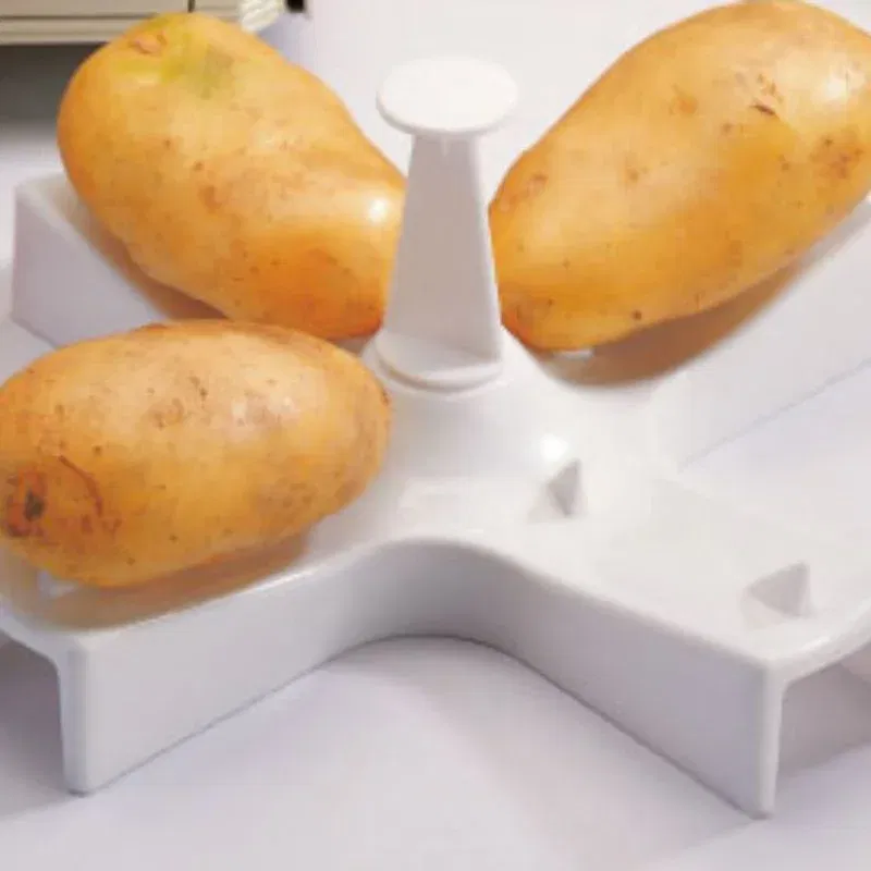 Suportul pentru Cartofi la Microunde este accesoriul ideal pentru cei care doresc sa prepare cartofi copti deliciosi intr-un timp record. Fabricat dintr-un material sigur pentru microunde, acest suport este proiectat special pentru a tine cartofii ferm pe loc in timpul gatitului, asigurand o coacere uniforma si rapida. Cu dimensiuni compacte de 19x4x4 cm, acest produs este usor de depozitat si foarte practic pentru orice bucatarie. Poti prepara pana la patru cartofi de marime medie in aproximativ 12-15 minute, oferindu-ti o optiune rapida si sanatoasa pentru mesele tale. In plus, suportul este compatibil cu masina de spalat vase, ceea ce il face usor de curatat dupa fiecare utilizare.