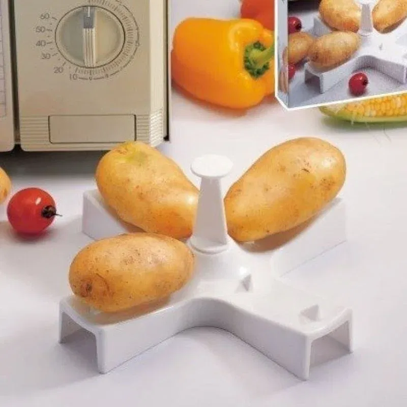 Bucura-te de cartofi copti perfecti, rapid si usor, direct in cuptorul cu microunde cu ajutorul acestui suport ingenios.