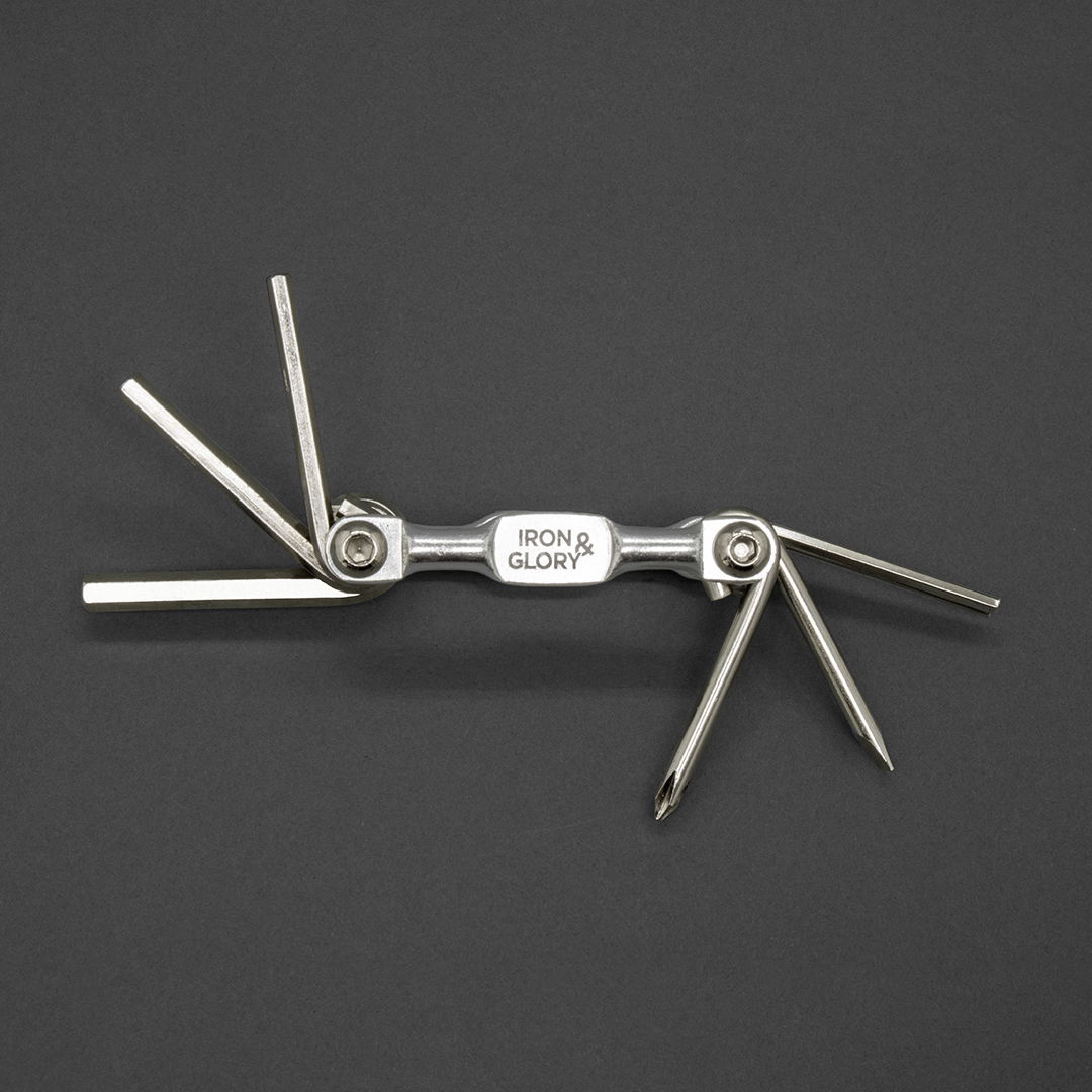 Acest accesoriu multi-functii te va ajuta sa-ti repui imediat bicla pe doua roti si sa-ti continui drumul. Se livreaza intr-o cutie compacta, pe care o poti strecura cu usurinta in buzunar sau rucsac.