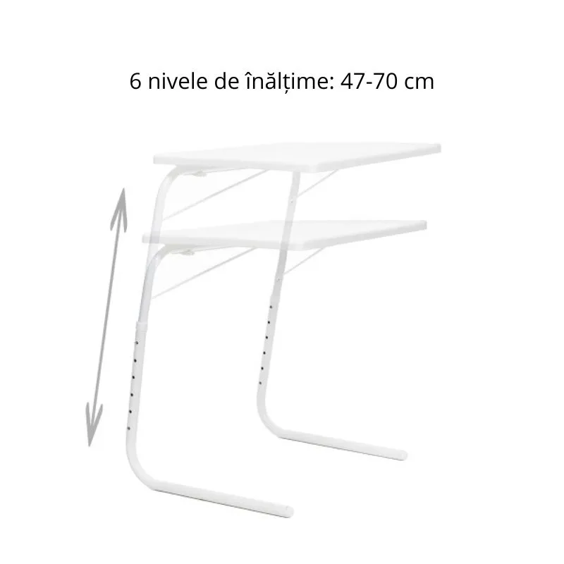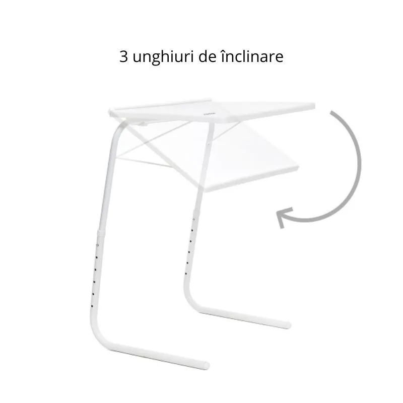 Foloseste-o pentru micul dejun in pat, pentru notitele pe care le faci cand stai pe canapea, cand citesti, cand lucrezi la laptop, cand iei niste gustari in fata televizorului. Ofera 6 nivele de inaltime si 3 unghiuri de inclinare. La un simplu calcul matematic, asta inseamna 18 pozitii diferite.