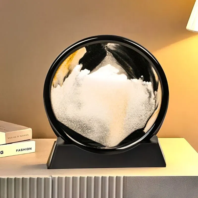 Nisipul in miscare ofera un spectacol vizual calmant si relaxant, perfect pentru momentele de relaxare si meditatie.