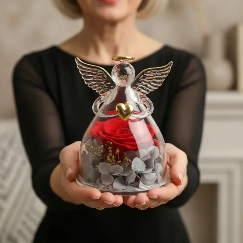 Utilizare: Inarmeaza-te cu un zambet dulce si daruieste-i cadou acest trandafir criogenic cu Inger pazitor. Pe masura ce il desface, poti acompania cadrul cu prajituri, sampanie, ba chiar si cu o cerere in casatorie de neuitat. La final va sfarsit pe birou sau pe noptiera si ii va oferi posibilitatea prezentei feminine sa retraiasca la nesfarsit acest moment unic in visele si trezirile sale.