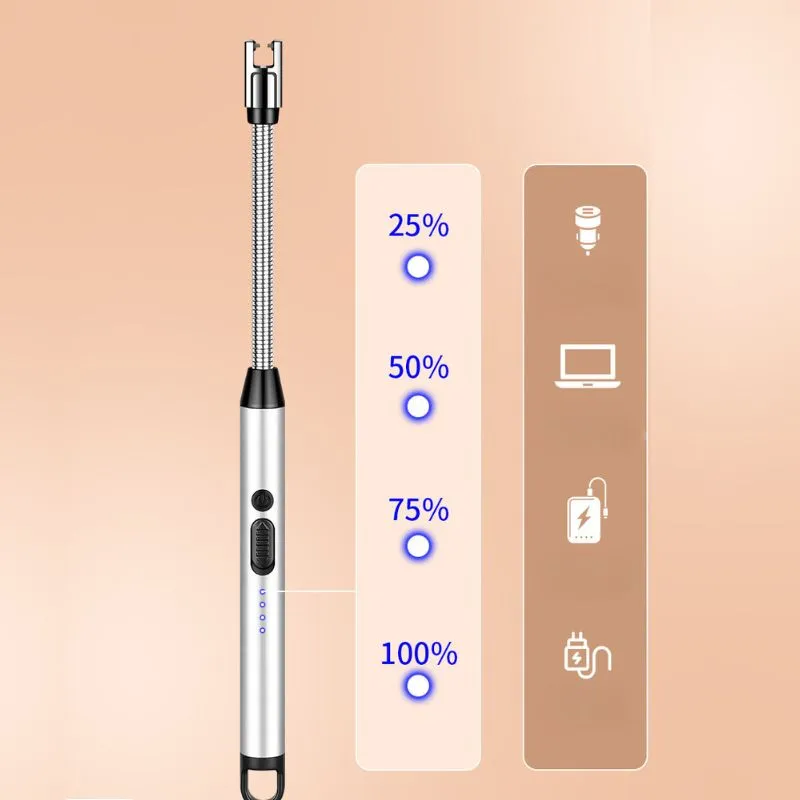 Utilizare: Bricheta electrica cu plasma este foarte usor de folosit. Incarca dispozitivul folosind cablul USB inclus. Pentru a aprinde, apasa butonul de pornire pentru a genera arcul electric si apropie bricheta de obiectul pe care doresti sa-l aprinzi. Gatul flexibil permite ajustarea unghiului pentru a ajunge usor la locurile greu accesibile. Indicatorul LED iti arata nivelul bateriei, iar bricheta poate fi reincarcata rapid atunci cand este necesar.