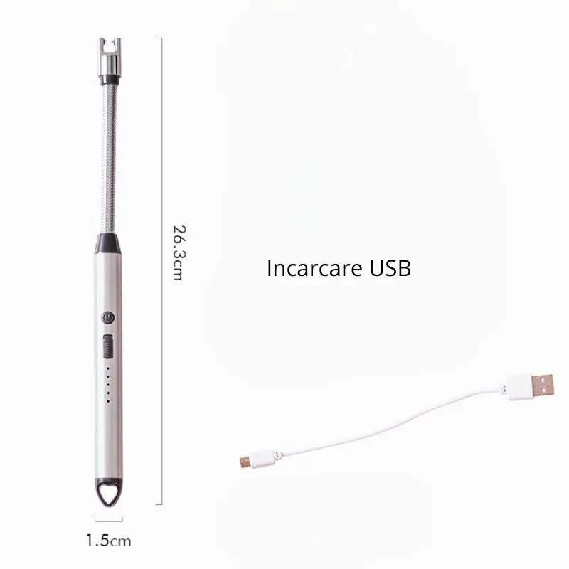 Bricheta electrica cu plasma este gadgetul perfect pentru oricine are nevoie de o sursa de aprindere fiabila si usor de utilizat. Fabricata din materiale de inalta calitate, aceasta bricheta eleganta si moderna are un design ergonomic si o dimensiune compacta de 26,3 cm inaltime si 1,5 cm latime. Cu un gat flexibil care poate fi ajustat la diverse unghiuri, bricheta asigura accesul facil la locurile greu accesibile, cum ar fi aragazuri, seminee, lumanari si gratare.