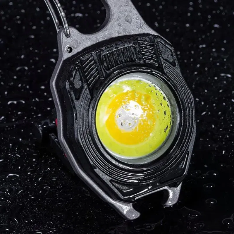 Mini lanterna portabila si multifunctionala este gadgetul ideal pentru orice aventurier sau iubitor de activitati in aer liber. Fabricata din ABS, PS si aluminiu de inalta calitate, aceasta lanterna compacta combina robustetea cu functionalitatea. Cu o greutate de doar 70 g si dimensiuni de 8.8 x 5 x 2.6 cm, este usor de transportat si poate fi atasata ca breloc la chei sau rucsac. Lanterna este echipata cu un LED COB de 10 W, oferind o luminozitate de 500 lumeni si o raza de iluminare de pana la 200 m.
