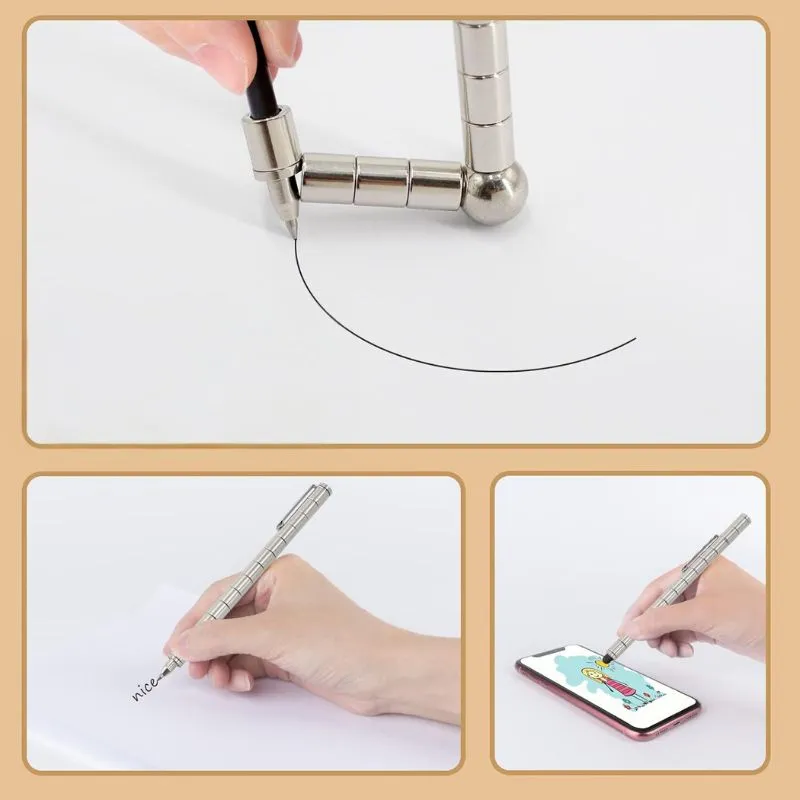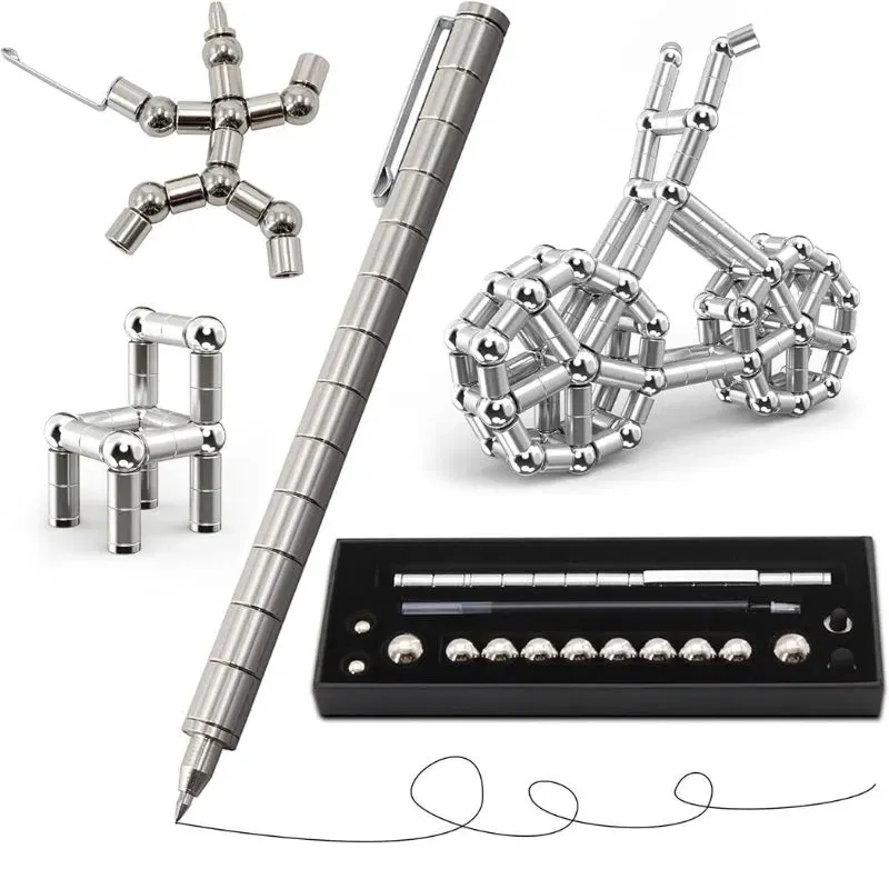 Utilizare: Pixul Argintiu Antistres cu Magnet este perfect pentru scris, utilizarea dispozitivelor cu ecran tactil sau relaxare. Poti crea forme cu ajutorul componentelor magnetice pentru a te destinde, sau poti folosi pixul pentru notite rapide pe telefon sau tableta. Compact si elegant, acest pix aduce un plus de functionalitate si distractie in viata ta de zi cu zi.