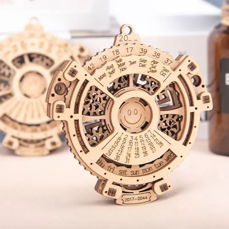 Descopera mecanismul timpului cu acest Puzzle 3D din lemn Calendar! O piesa de ingeniozitate si mestesug, acest calendar te va captiva cu complexitatea sa si te va transporta intr-o calatorie prin timp.