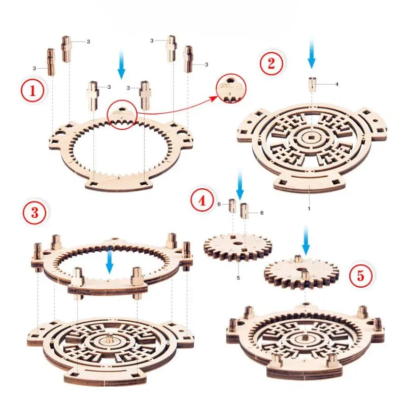 Utilizare: Utilizeaza acest Puzzle 3D din lemn Calendar nu doar ca un instrument educativ, dar si ca un element decorativ in casa ta. Pe langa aspectul sau estetic, este ideal pentru a invata si a experimenta manual principiile de baza ale mecanicii si timpului. In acelasi timp, asamblarea acestui puzzle poate fi o activitate relaxanta si imbogatitoare, perfecta pentru a petrece timp de calitate fie singur, fie in compania celor dragi.
