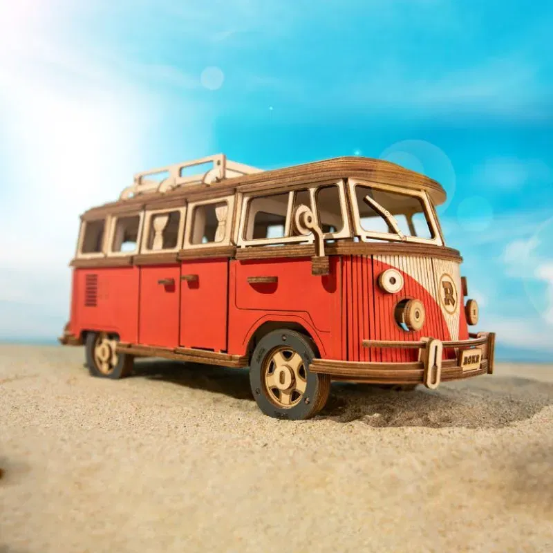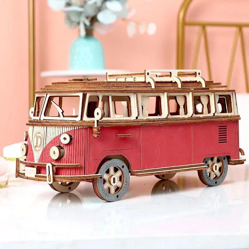 Modelul VW T1, cu designul sau caracteristic in forma de V si parbriz divizat, a fost lansat initial in 1950, inspirat de van-ul de livrare bazat pe VW Beetle. Acest puzzle 3D reconstituie cu fidelitate minibusul de lux, adesea numit "samba bus", care a captivat entuziastii auto cu ferestrele sale ovale, scaunele extrem de confortabile si elementele cromate. Cu 226 de piese de lemn taiate precis cu laser, acest kit este nu doar un puzzle, ci si o piesa de colectie ce reflecta eleganta si istoria vehiculului.