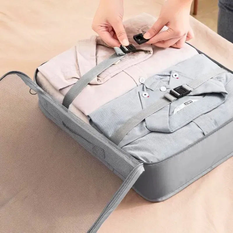 Utilizare: Setul de huse pentru organizarea bagajului este foarte usor de folosit. Alege husa potrivita pentru fiecare tip de articol: haine, lenjerie, incaltaminte, accesorii. Plaseaza articolele in husa, inchide fermoarul si depoziteaza husele in valiza. Datorita materialului rezistent, husele pot fi curatate usor si reutilizate pentru fiecare calatorie. Manerele practice permit transportul facil al huselor, iar dimensiunile variate ale acestora se potrivesc perfect in orice tip de bagaj.