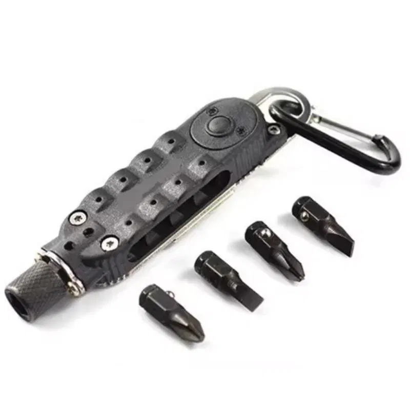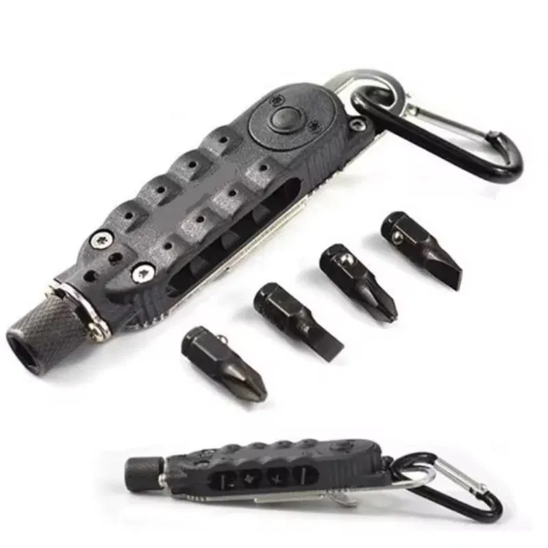 Utilizare: Aceasta surubelnita de buzunar este usor de utilizat si versatila. Utilizeaza cele 4 tipuri de biti la unghiuri de 90° sau 180° pentru lucrari diverse. Lumina LED incorporata iti ofera vizibilitate in zone intunecate, iar deschizatorul de sticle adauga un plus de functionalitate. Un accesoriu indispensabil pentru activitati zilnice si calatorii.