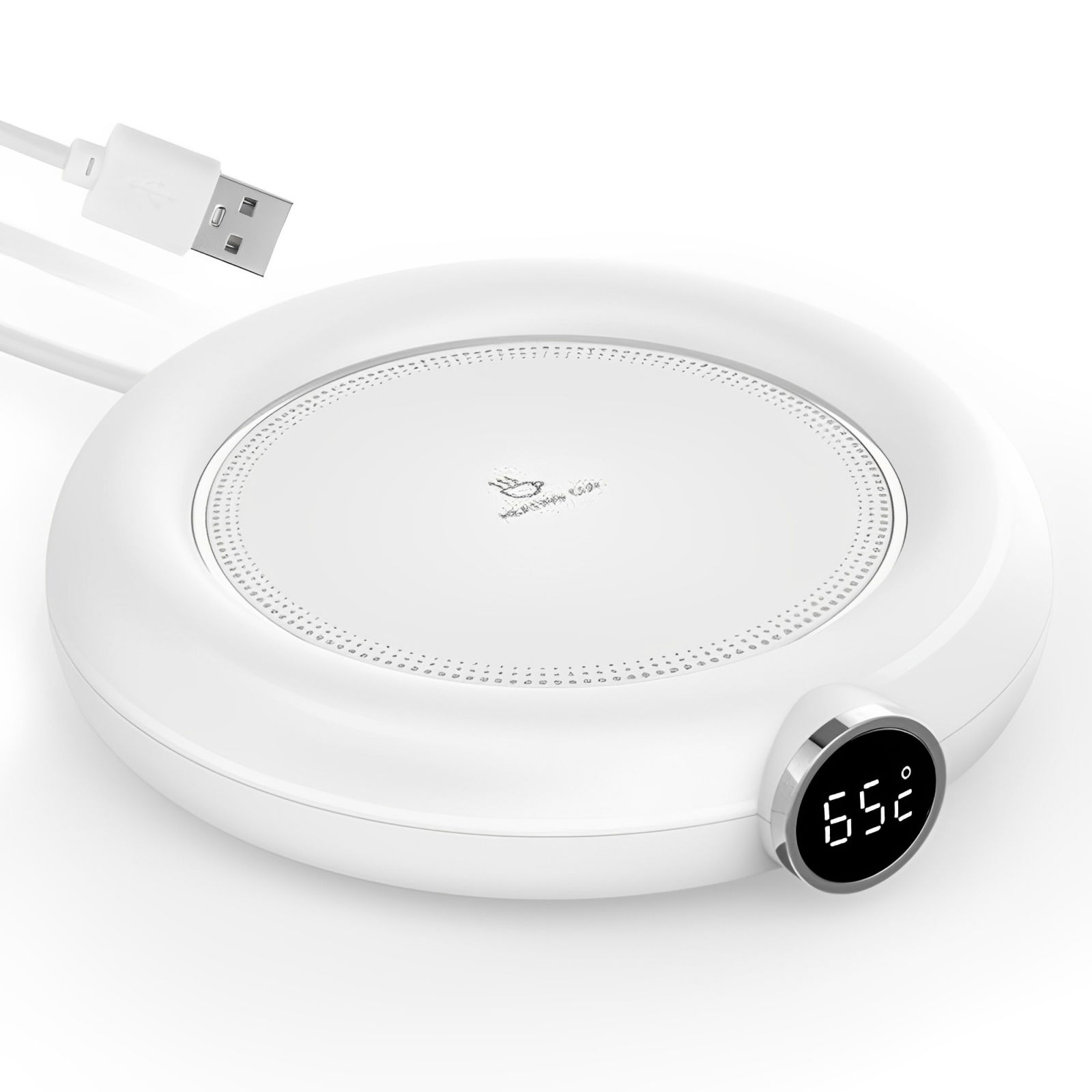 Tot ce trebuie sa faci este sa conectezi aparatul la un dispozitiv prin cablul USB, sa pui cana cu bautura pe care o vrei calda direct pe dispozitiv si sa iti alegi temperatura la care vrei ca bautura sa ramana. Display-ul digital necesita o simpla atingere pentru a seta temperatura dorita. Fie ca alegi 55 de grade, 65 grade sau 75 de grade, bautura ta se va pastra la temperatura constanta aleasa de tine, chiar pana la ultima picatura de cafea/ceai.