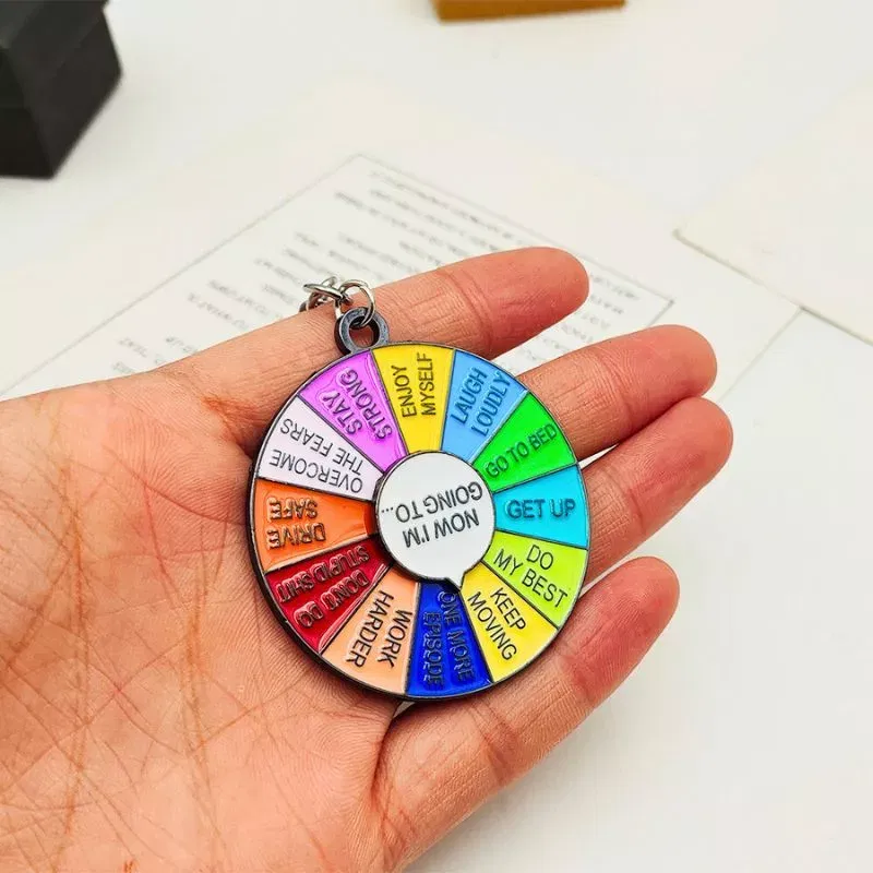 Breloc spinner amuzant Now I'm going to, te v-a ajuta sa iei cea mai buna decizie in momentele in care plictiseala se face remarcata. Poate fi chiar un mod amuzant de a alege daca vei sta in pat toata ziua sau sa mergi la jobul plictisitor. Este confectionat din aliaj de zinc ceea ce il face sa reziste mai mult in timp, culorile si scrisul reliefat oferindu-ti un sentiment placut la atingere.
