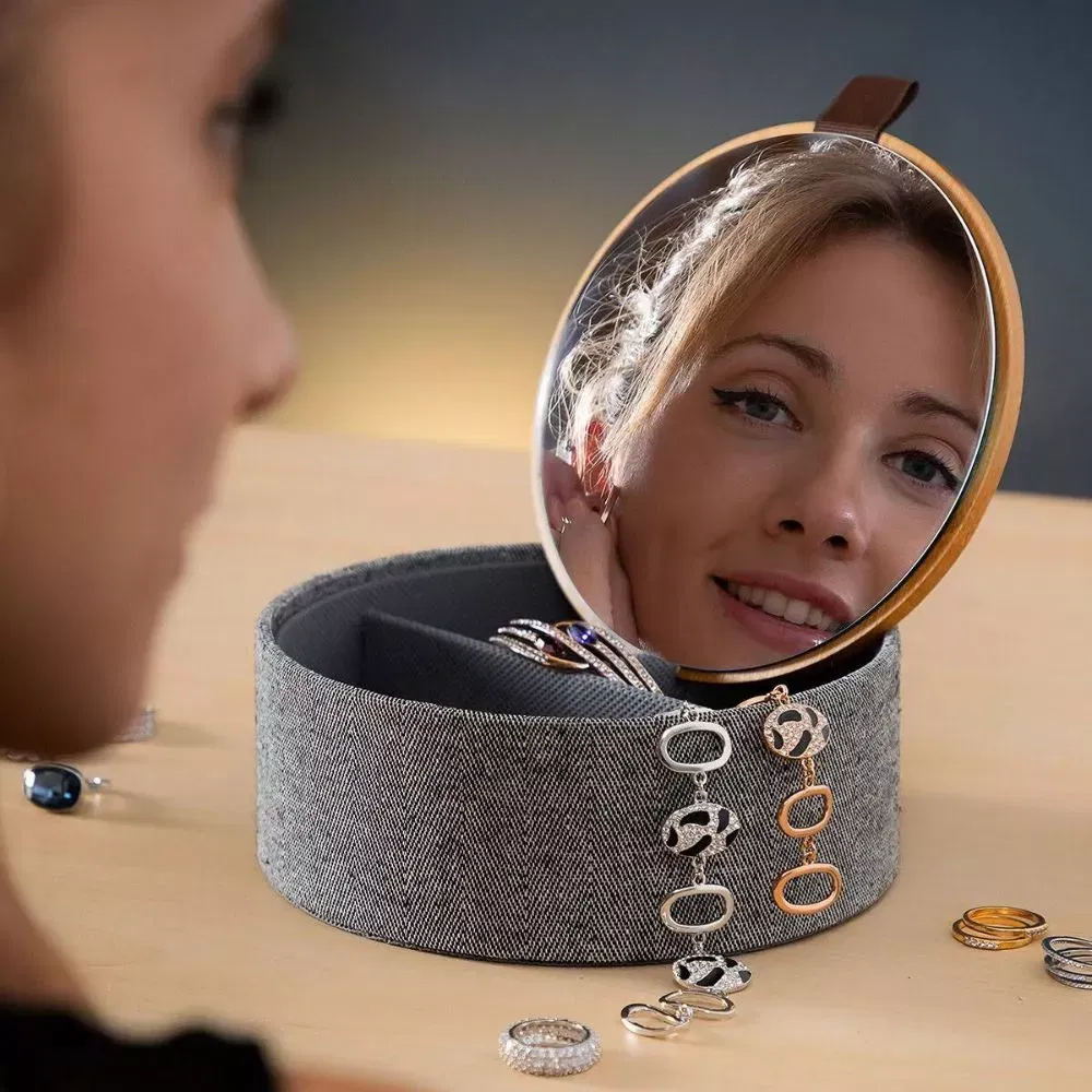 Utilizare: Ofera-i cadou Cutiuta de bijuterii Bamboo cu oglinda ca va sti ea sigur cum sa o foloseasca mai bine: pentru lucrurile sale de pret sau cosmeticele mai mici. Capacul are un sistem de deschidere super- style: tragi de un siret si se inalta triumfator, dezvaluind oglinda frumoasa, care in rest este protejata perfect in interior. Ok, acum chiar ai cel mai sigur cadou pentru o femeie deosebita din viata ta.