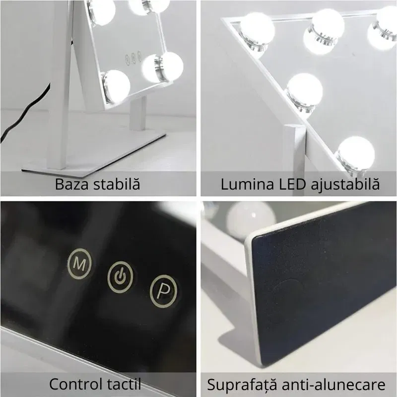 Utilizare: Conecteaza-ti oglinda machiaj cu Smart Touch si 9 becuri, Vanity, la o sursa puternica de energie si sa inceapa joaca! Atinge subtil suprafata oglinzii pana cand lumina porneste si capata intensitatea, respectiv culoarea dorita. Apoi activeaza-ti intreaga dexteritate si fa-ti un machiaj cu care sa eclipsezi ca la Hollywood.