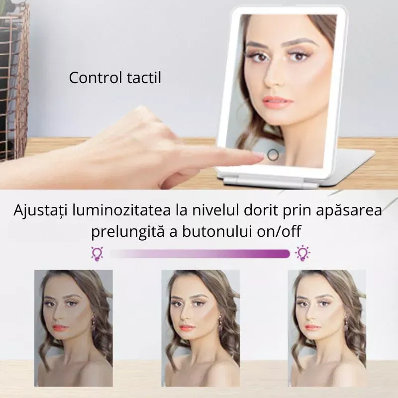 Conecteaza imediat oglinda make up de calatorie, cu 72 led-uri, pliabila si reincarcabila la cablul USB si numara cele 120 minute pana la marea utilizare. Aseaz-o comod in unghiul dorit si atinge delicat senzorul centrat cu tuchscreen pentru a-ti alege tipul de lumina preferat. Incepe de indata sa-ti analizezi trasaturile si sa intervii cu o rutina personalizata prin care sa devii o versiune premium a ta.