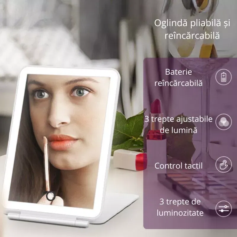 Nicio calatorie nu e completa pentru o femeie daca n-are in bagaj cel putin o Oglinda make up de calatorie, cu 72 led-uri, pliabila si reincarcabila. A trecut vremea in care o puteai convinge sa mearga in Dubai, Bora-Bora sau in alte destinatii exotice doar fluturandu-i biletul pe sub nas. Ea stie ca trebuie sa fie impecabila zi de zi asa ca, cea mai buna invitatie incepe cu o oglinda cadou moderna care o ajuta sa-si puna personalitatea in evidenta in cel mai frumos mod.
