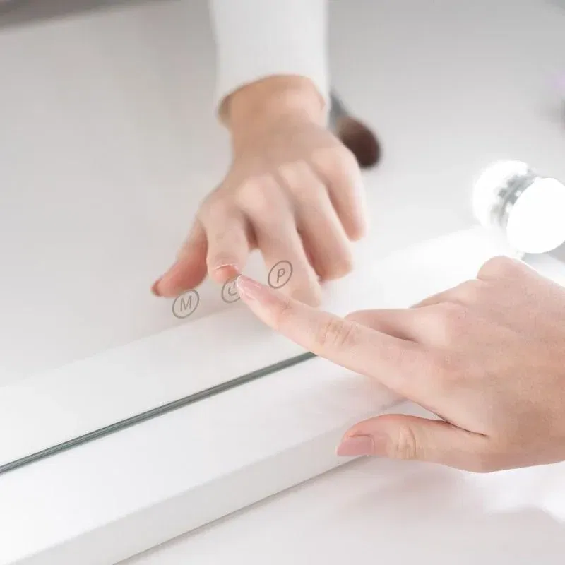 Conecteaza cablul cu adaptor la o priza, foloseste cele 3 butoane tactile pentru a seta intensitatea si culoarea luminii, si ajusteaza pozitia oglinzii dupa preferinte. Datorita cadrului rotativ si designului compact, oglinda poate fi utilizata pe orice masa de machiaj sau suprafata plana.