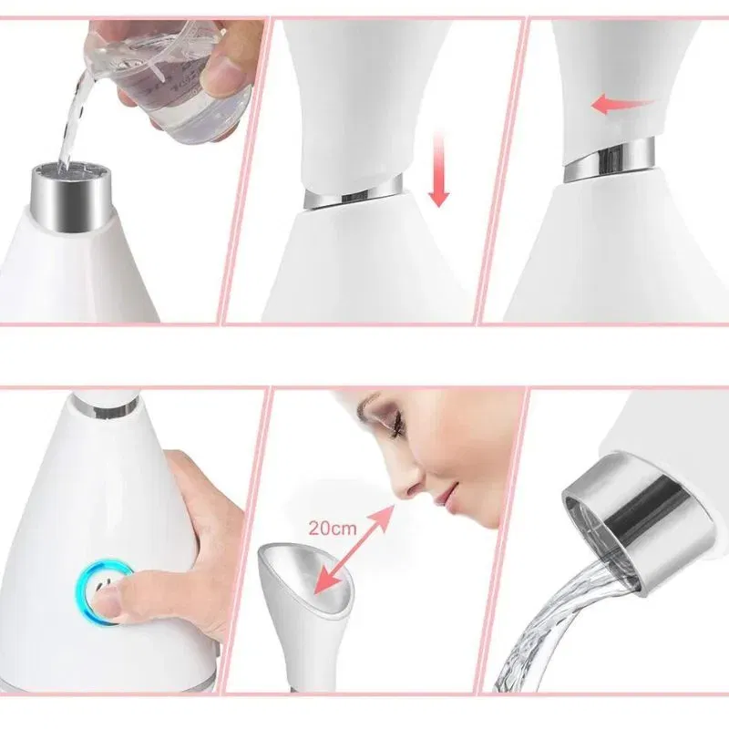 Utilizare: Sauna Faciala pentru Ingrijirea Tenului este extrem de usor de utilizat. Umple rezervorul cu apa si porneste dispozitivul. Asteapta cateva momente pana cand aburul cald incepe sa fie eliberat, apoi pozitioneaza-ti fata la o distanta confortabila pentru a beneficia de tratamentul cu abur. Utilizeaza sauna faciala timp de 10-15 minute pentru a deschide porii si a facilita curatarea profunda a pielii. Pentru cele mai bune rezultate, continua cu rutina ta obisnuita de ingrijire a pielii, aplicand produse de hidratare si tratamente specifice. Sauna faciala este ideala pentru utilizare saptamanala, oferindu-ti o experienta spa relaxanta si revigoranta chiar la tine acasa.